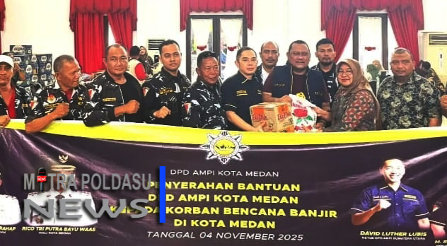 Medan (Mitra Poldasu News) Dewan Pimpinan Daerah (DPD) Angkatan Muda Pembaharuan Indonesia (AMPI) Kota Medan menyalurkan bantuan kepada para korban terdampak banjir pada Kamis (4/12/2025).
