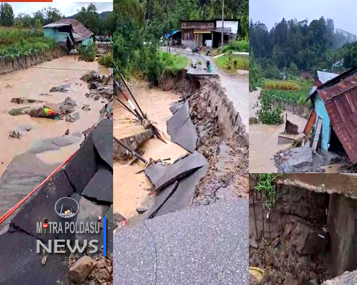 Tarutung (Mitra Poldasu News) Akibat curah hujan tinggi selama 3 hari berturut-turut di kabupaten Tapanuli Utara, mengakibatkan jalan penghubung antar desa terputus total. Akses jalan yang terputus antara desa Aek Siansimun dengan Desa Saitnihuta. akibat meluapnya sungai disisi jalan dan mengakibatkan longsor dan merusak satu rumah warga. Rabu, 26 November 2025.