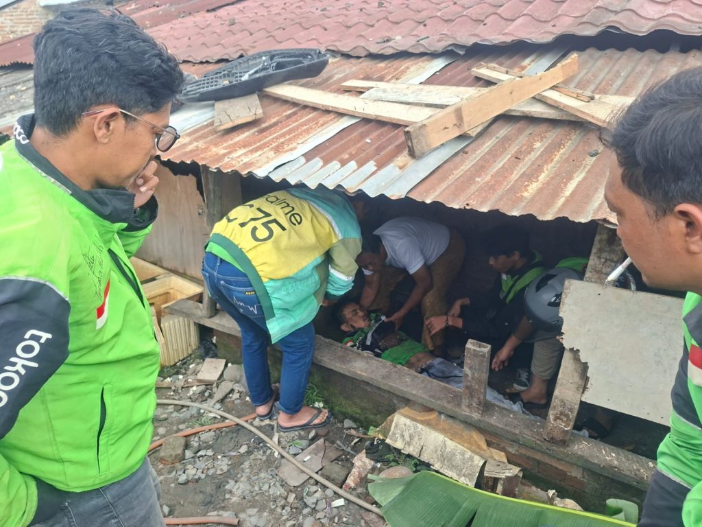 Seorang warga bernama Jefri Sinaga mengatakan peristiwa itu terjadi sekira pukul 12.30 WIB, tadi. Saat itu, pengemudi ojol yang disebut bernama Rajali (38) itu tengah membawa seorang penumpang