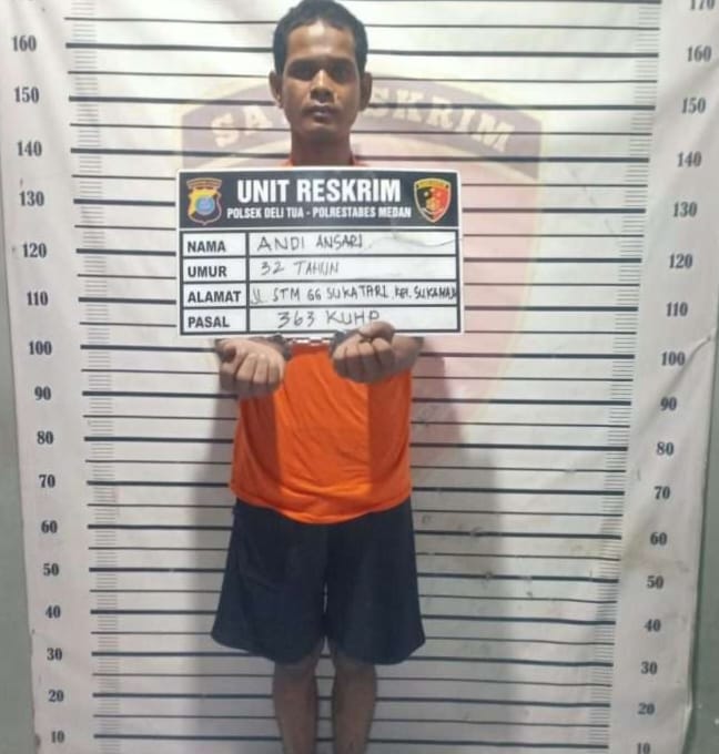 Saat dilakukan penyisiran, petugas melihat tersangka sedang berjalan kaki di Jalan Suka Tani, dan tanpa perlawanan pelaku berhasil diamankan dan dibawa ke Mapolsek Deli Tua”, tegas Kapolsek Deli Tua Kompol PS Simbolon.
