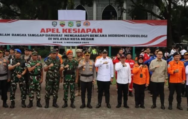 Medan (Mitra Poldasu News) Polrestabes Medan melaksanakan Apel Kesiapan Tanggap Darurat Bencana Hidrometeorologi Tahun 2025 di Lapangan Benteng Medan, Rabu (5/11/2025).