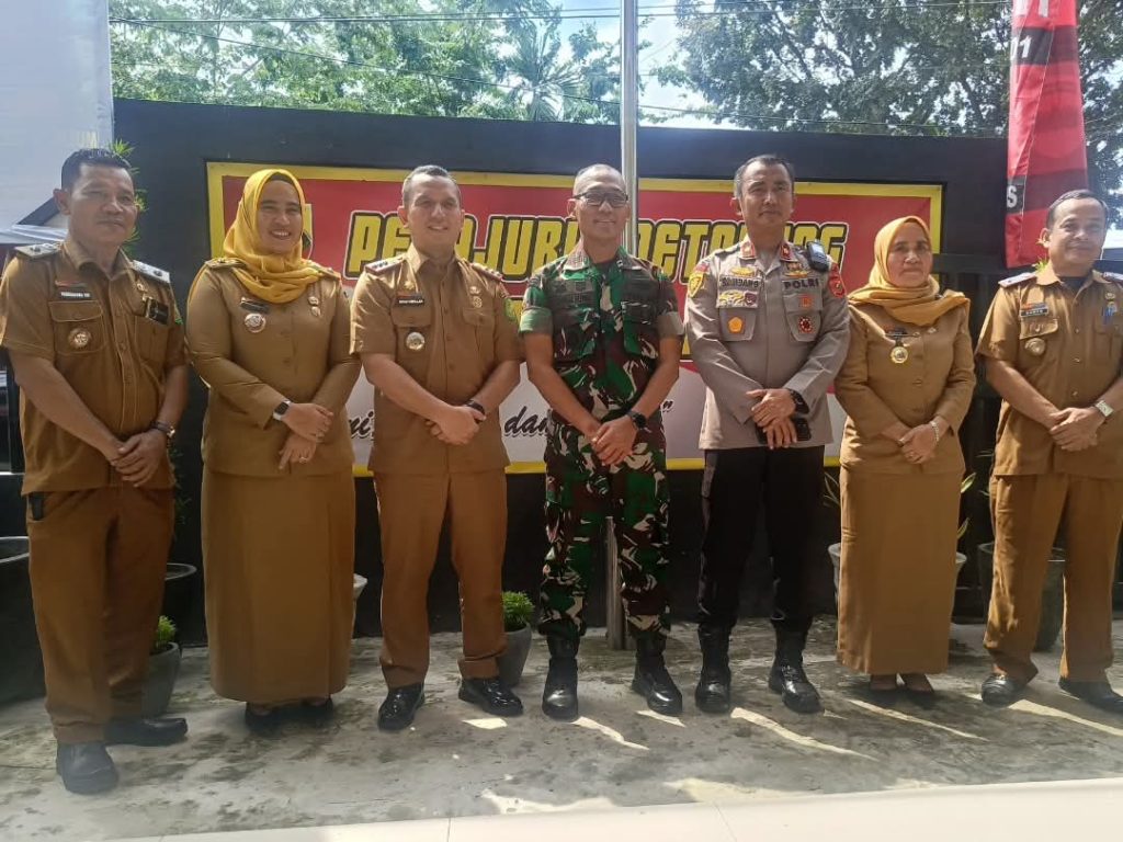 Rombongan disambut langsung oleh Danramil 0201-06/MS Kapten Arm Yani Darma Putra, yang menyampaikan ucapan terima kasih atas perhatian dan sinergi serta kolaborasi yang selama ini telah terjalin baik antara TNI, Polri, dan unsur Muspika.