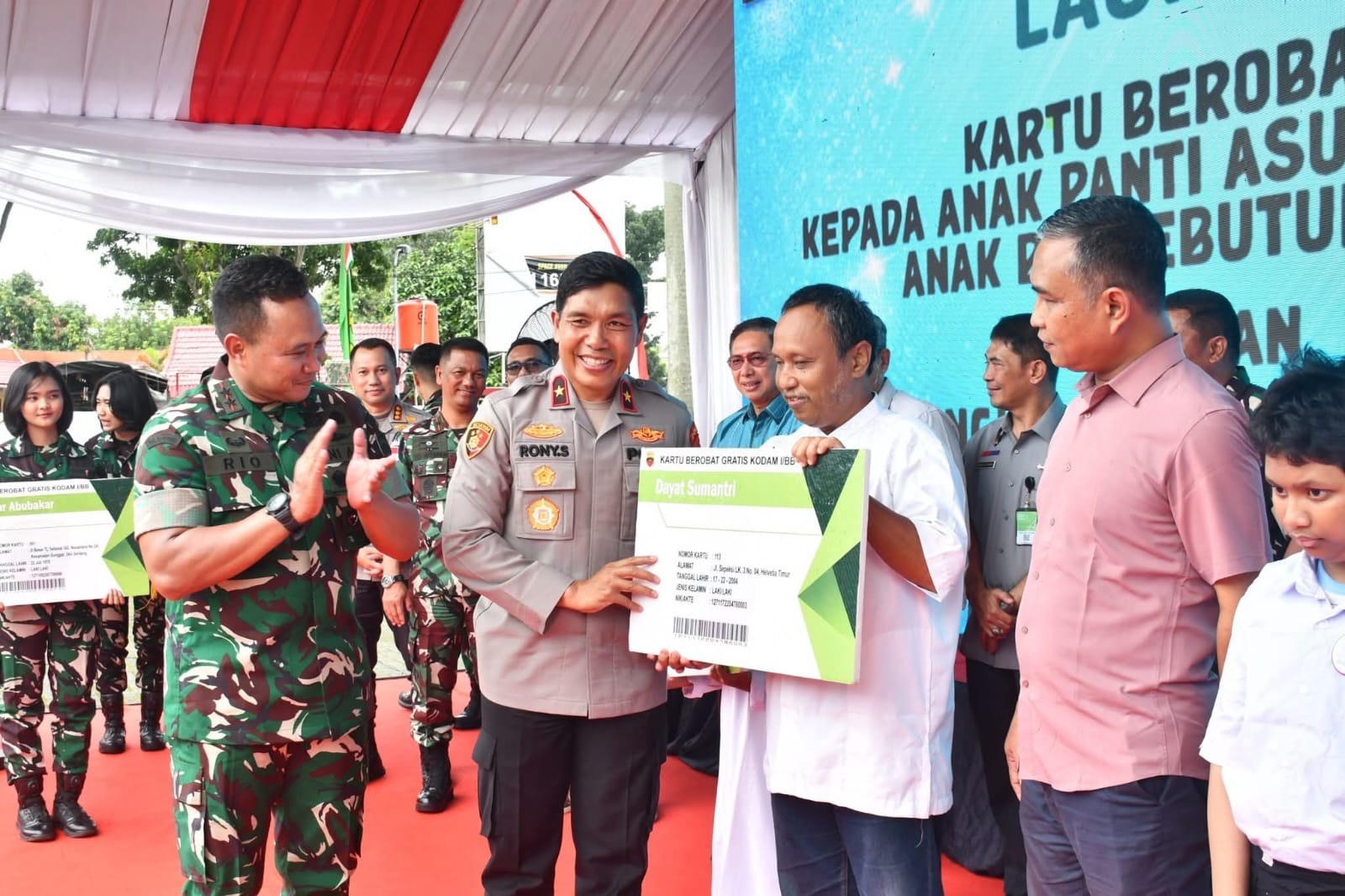 Acara ditandai dengan penekanan layar monitor serta penyerahan kartu berobat gratis secara simbolis kepada penerima manfaat. Turut hadir :Kasdam I/BB, Kapoksahli Pangdam I/BB, Ketua DPRD Sumut (Drs Wong Cun Sen M.Pd.B) , Dankodaeral I/Belawan, Danlanud Soewondo Medan, Aspers Kosek I/Medan, Wakapolda Sumut, Hakim Tinggi Adhoc Tipikor, Asintel Kajati Sumut, pejabat utama Kodam I/BB, mitra kerja, serta pengurus Persit KCK Daerah I/BB.