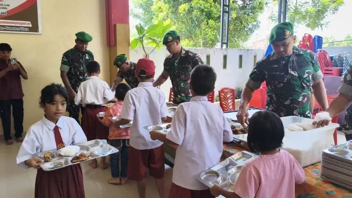 Menu yang dibagikan terdiri dari nasi putih, ayam kalasan, sayur wortel dan toge, tempe goreng, serta buah pisang. “Kami ingin anak-anak mendapatkan asupan gizi yang baik supaya bisa tumbuh sehat dan berprestasi. Kalau anak-anak sehat, masa depan bangsa juga kuat,” ujar Danramil 0201-08/MA Kapten Czi Sugito.