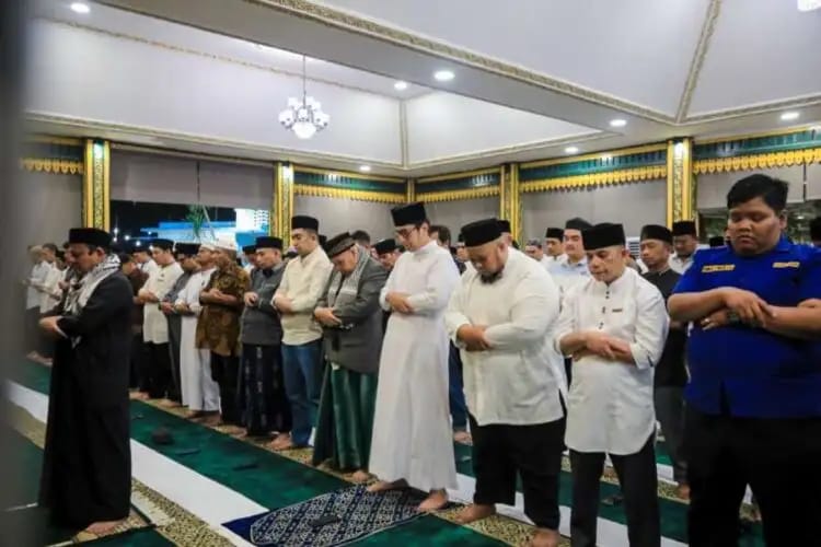 Medan (Mitra Poldasu News) Di malam kelima bulan suci Ramadhan, Wali Kota Medan, Rico Tri Putra Bayu Waas melaksanakan Salat Tarawih bersama jajaran Kecamatan Medan Selayang beserta tokoh agama dan tokoh masyarakat serta ibu-ibu pengajian di Pendopo Rumah Dinas Wali Kota, Minggu (22/2/26) malam.