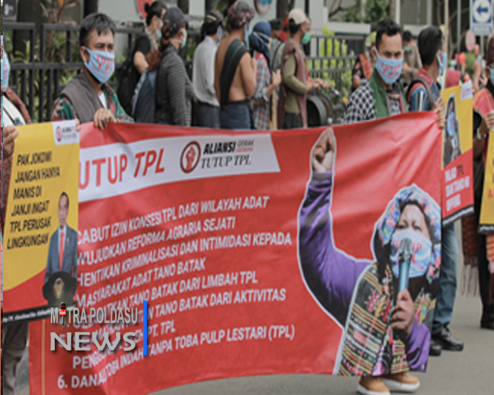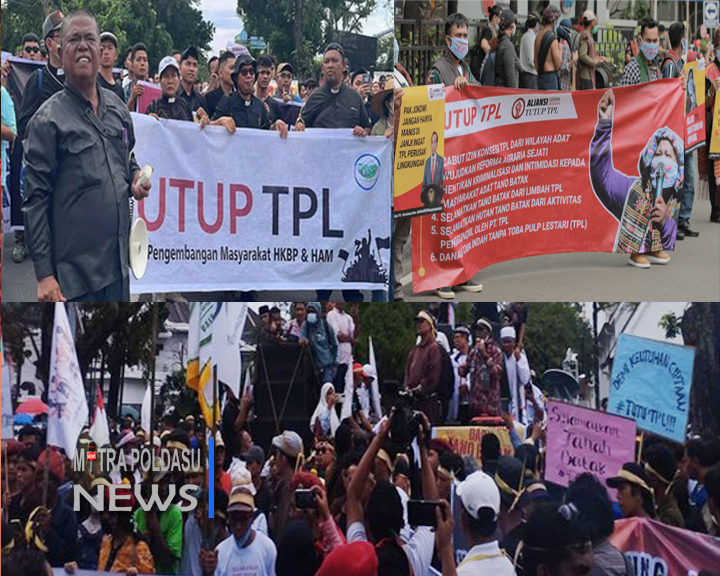 Seluruh peserta aksi terus menyuarakan dan mendesak Gubernur Sumut Bobby Nasution supaya menutup total operasional PT.Toba Pulp Lestari ( TPL) karena dianggap merusak lingkungan di kawasan Danau Toba dan Kabupaten Toba dan juga sangat merugikan bagi Masyarakat yang bermukim di sekitaran PT.TPL.