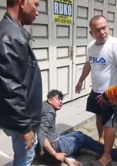 Warga yang geram langsung menghakimi pelaku hingga babak belur. Aksi tersebut dihentikan petugas keamanan komplek yang mengamankannya ke pos keamanan.