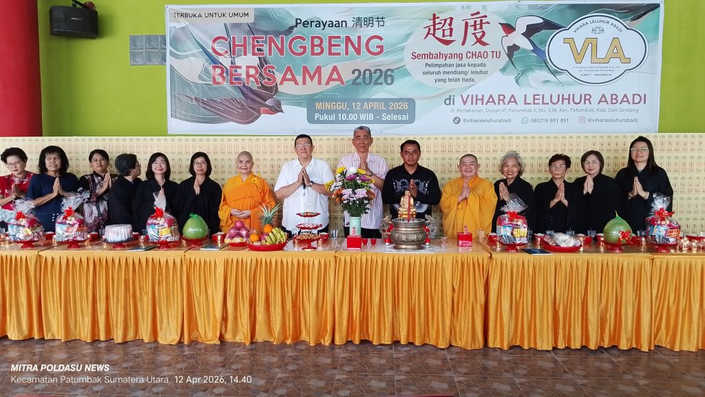 Medan (Mitra Poldasu News) Vihara Leluhur Abadi mengadakan acara perayaan Cheng Beng Bersama 2026 mengundang Biksu Virya Dharma Mahasthavira Dan Biksuni Karuna di Jalan Pertahanan Dusun VI Patumbak II No 338 Kecamatan Patumbak Kabupaten Deli serdang Minggu 12 April 2026 pukul 10.00 wib