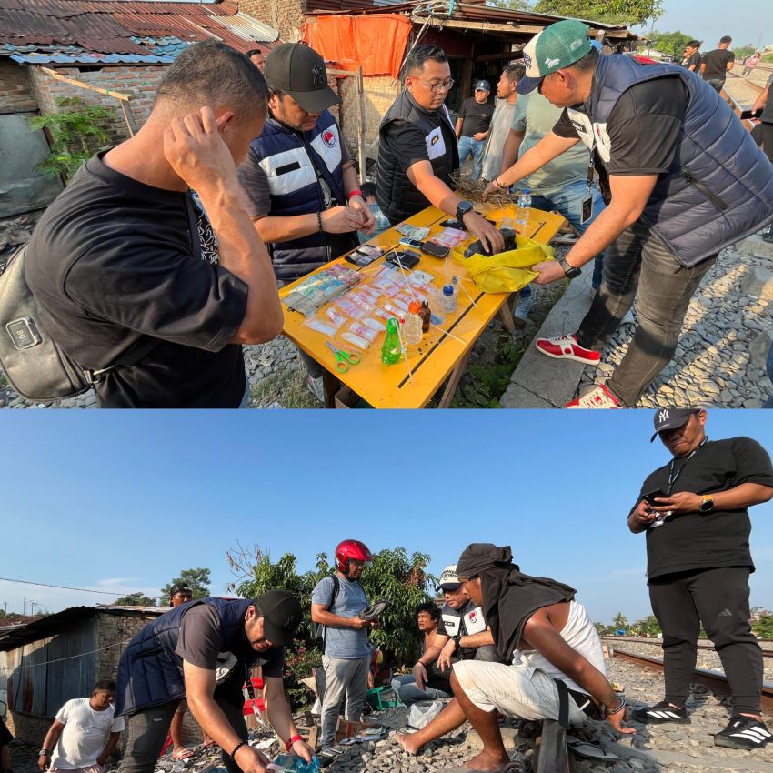 Medan (Mitra Poldasu News) Satres Narkoba Polrestabes Medan kembali menggerebek sarang narkoba di kawasan bantaran Rel Kereta Api (KA) Tembung, Kecamatan Percut Seituan, Sabtu (24/4/2026).