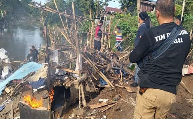 Petugas kemudian melakukan pembersihan lokasi dengan membongkar dan membakar barak-barak narkoba yang telah meresahkan masyarakat sekitar. Langkah ini dilakukan sebagai upaya memutus mata rantai peredaran dan penyalahgunaan narkotika di wilayah tersebut.