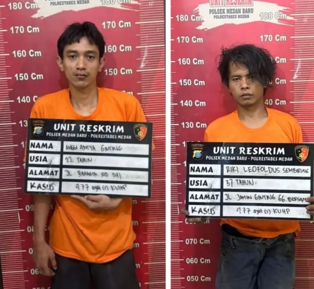 Kedua pelaku diamankan saat hendak membobol jendela rumah warga sekitar pukul 18.30 WIB.Keduanya diketahui bernama Riki Leofoldus Sembiring (37), warga Jalan Jamin Ginting Gang Bersama No. 24, serta Anggi Aditya Ginting (22), warga Jalan Bahagia No. 291.
