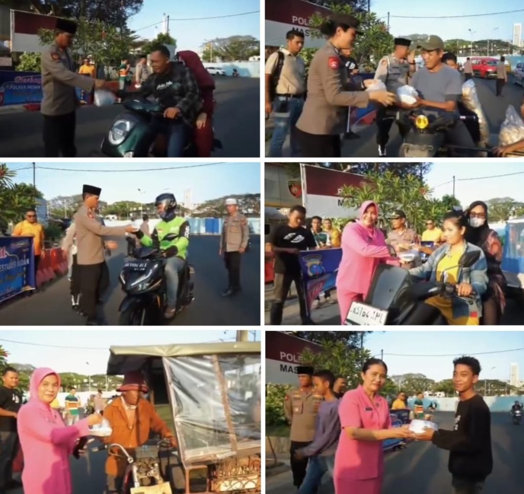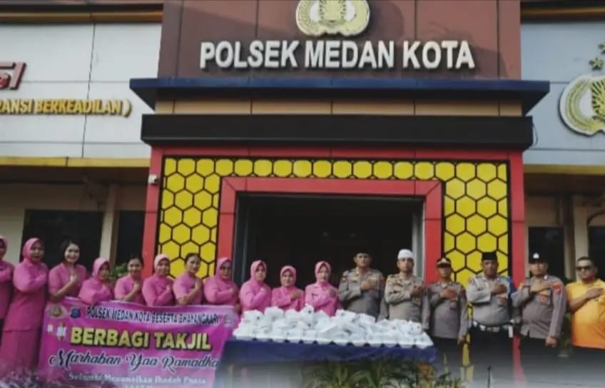 Sabtu ( 07/03/2026 ) sore.Kapolsek Medan Kota, AKP Feriawan,SH.didampingi Wakapolsek, AKP Ridwan, menjelaskan dalam pelaksanaannya, turut hadir juga sejumlah Kanit, dan ibu ibu Bhayangkari Polsek Medan Kota, yang langsung turun ke Jalan untuk membagikan 300 nasi (ayam penyet) bungkus kepada para abang betor, driver gojek, supir angkot dan juga kepada masyarakat yang melintas menjelang waktu berbuka puasa.