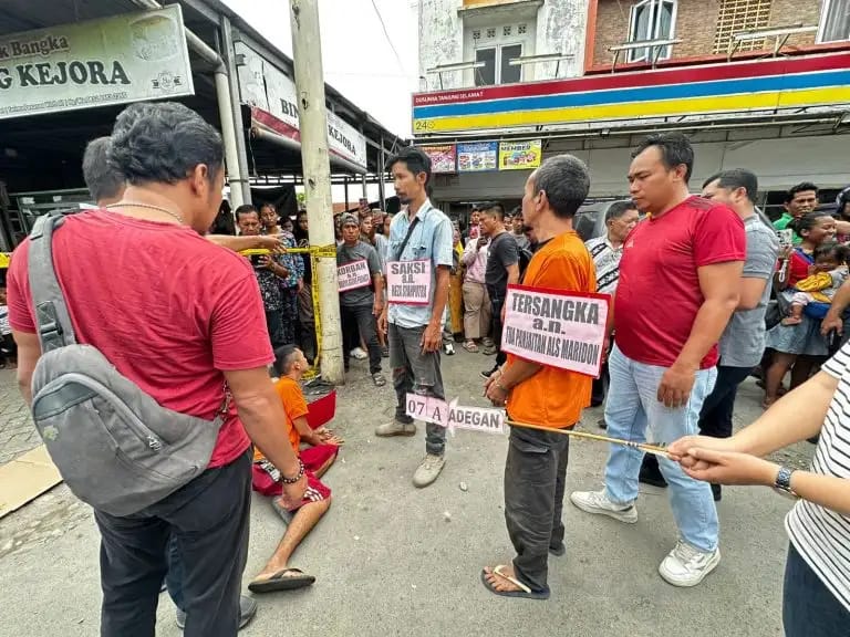 Medan (Mitra Poldasu News) Polsek Sunggal gelar rekonstruksi kasus pembunuhan Wahyu Agung Pranata (26) yang tewas ditikam di depan Indomaret, Jalan Tj Selamat, Medan Sunggal. (13/9/2025)
