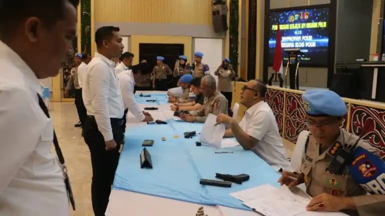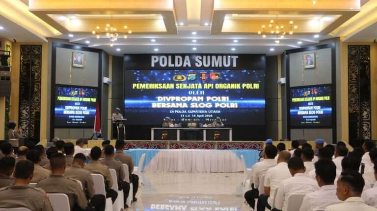 Medan (Mitra Poldasu News) Divisi Profesi dan Pengamanan (Propam) bersama SLOG Mabes Polri melaksanakan kegiatan penegakan ketertiban dan disiplin (Gaktibplin) berupa pemeriksaan senjata api (senpi) organik Polri di wilayah hukum Polda Sumatera Utara. Kegiatan berlangsung di Aula Tribrata Polda Sumut, Senin, dipimpin oleh Beny Arjanto bersama tim dari Mabes Polri.