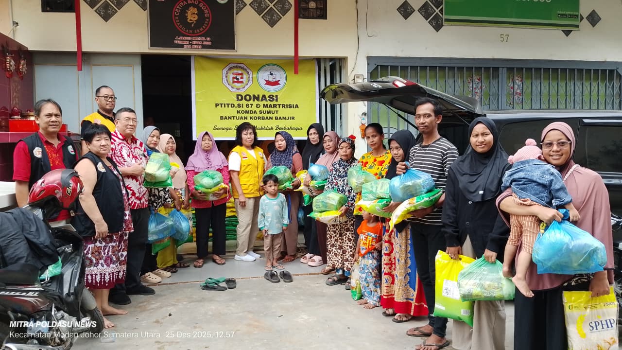 Medan (Mitra Poldasu News) Cetiya Bao Gong Keadilan Semesta yang berada di Jalan Manggis Indah No 58 Titi kuning medan Johor mengadakan kegiatan Bansos memberi bantuan sembako dari PTITD.SI 67 dan Martrisia pusat kepada masyarakat yang terdampak banjir Kamis 25 Desember 2025 pukul 12.00 wib.