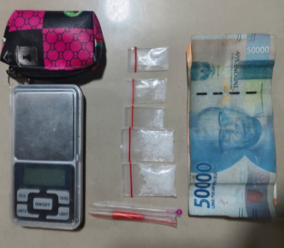 Tersangka yang berhasil diamankan berinisial APT (18), dengan barang bukti berupa 5 plastik klip sabu, 2 pipet ujung runcing, 1 buah dompet, 1 unit timbangan elektrik, serta uang tunai sebesar Rp60.000,-.