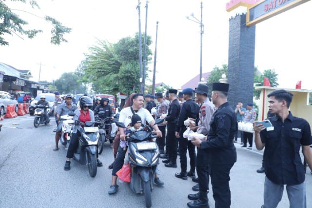 Dengan penuh kehangatan dan sikap humanis, para personel turun langsung ke jalan untuk membagikan paket takjil kepada masyarakat yang melintas, baik pengendara roda dua, roda empat, maupun warga sekitar yang tengah menjalankan ibadah puasa.