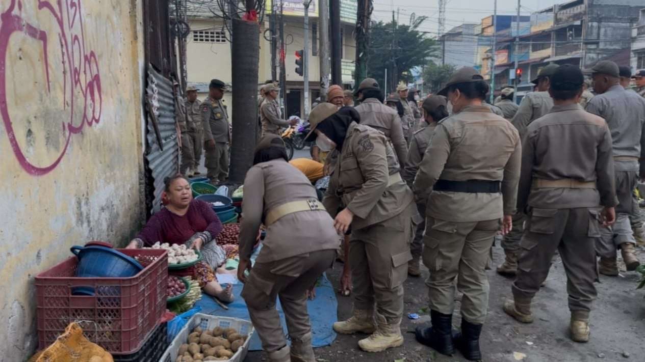 Satpol PP Medan Tertibkan Pedagang di Badan Jalan di Sekitar Pasar Sukaramai