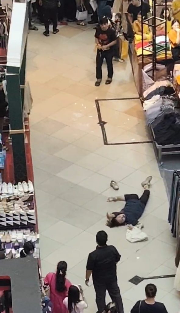 Hingga berita ini diturunkan, jenazah wanita tersebut masih berada di atrium lantai dasar mal. Tubuhnya ditutupi terpal berwarna putih dan dijaga petugas kepolisian.